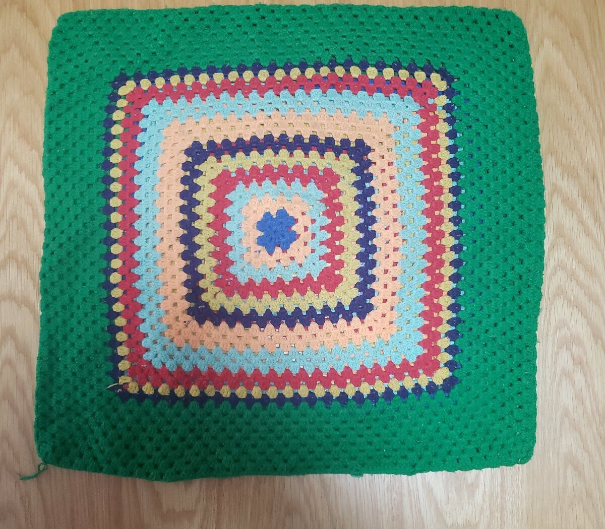 - ハンドメイド クッション マット 座布団 おざぶ カバー 毛糸 クッション 昭和レトロ 中古 1枚