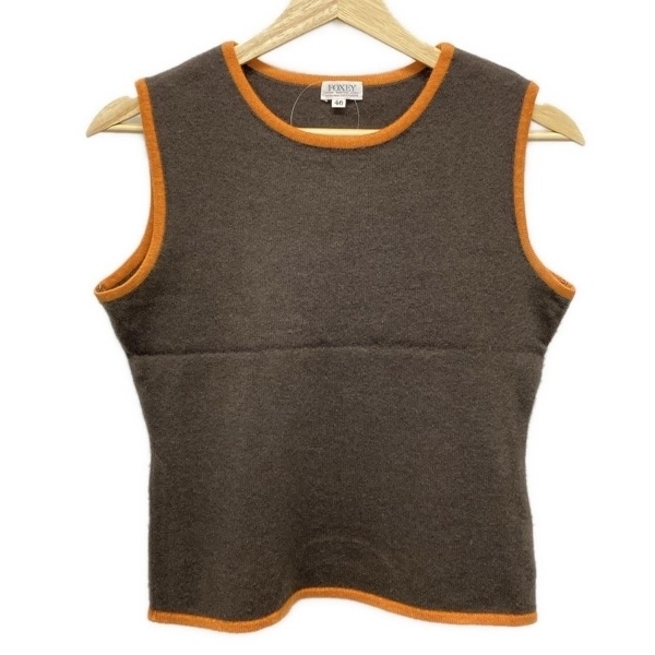 - フォクシー FOXEY ノースリーブセーター/ニット サイズ40 M - ボルドー×ブラウン レディース クルーネック 美品 トップス