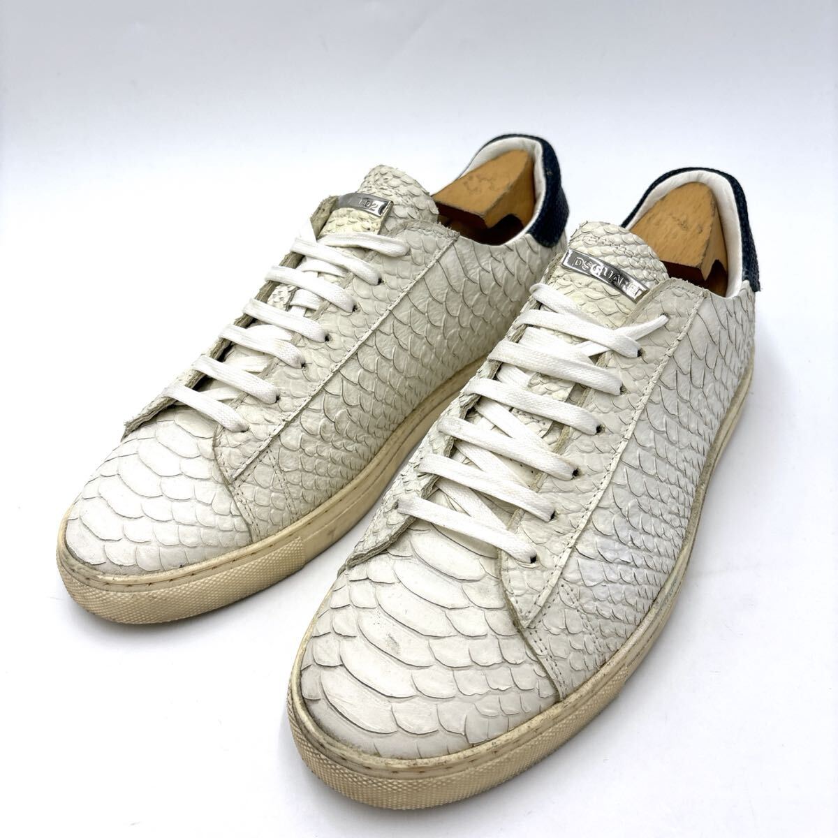 > D * イタリア製 '高級感溢れる' DSQUARED2 ディースクエアード 本革 パイソン型押し ローカット スニーカー EU41 26cm メンズ シューズ