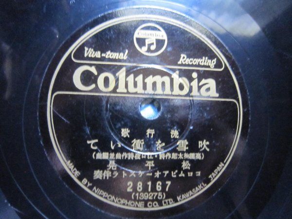 - コロムビア流行歌SP盤214★松平晃/吹雪を衝いて★ミスコロムビア/感激の春★美麗盤。SPレコード