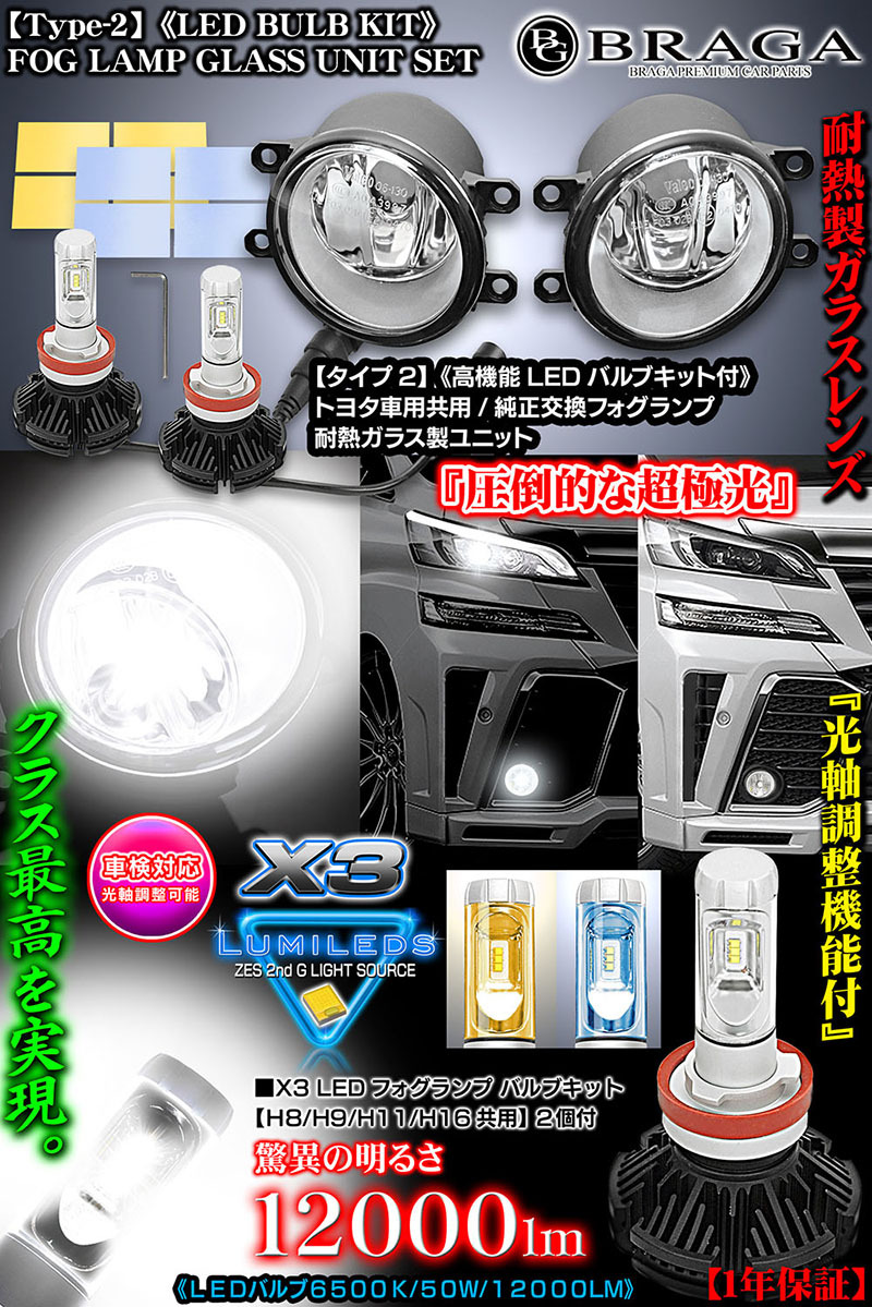 > T-2/20系後期アルファード/要加工[高性能LEDバルブキット付]純正交換フォグランプ/耐熱ガラスレンズ ユニット左右/防水/車検対応/ブラガ