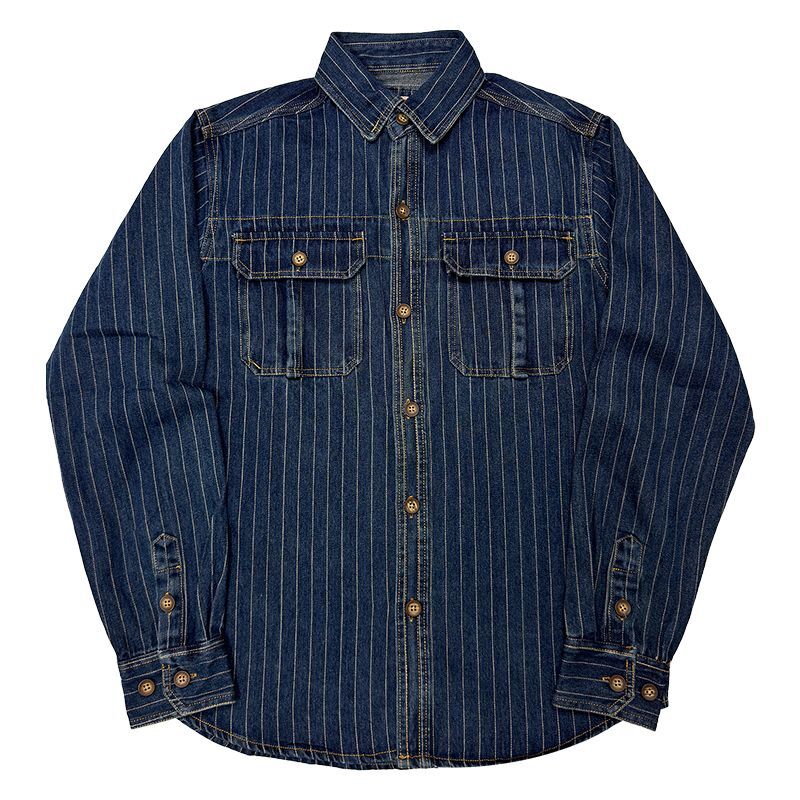 - 新入荷/【アメカジ デニムシャツ】ヘビーオンス ストライプ ワークシャツ メンズ 長袖 ヴィンテージ加工 多ポケット 春 秋 対応/ブルー