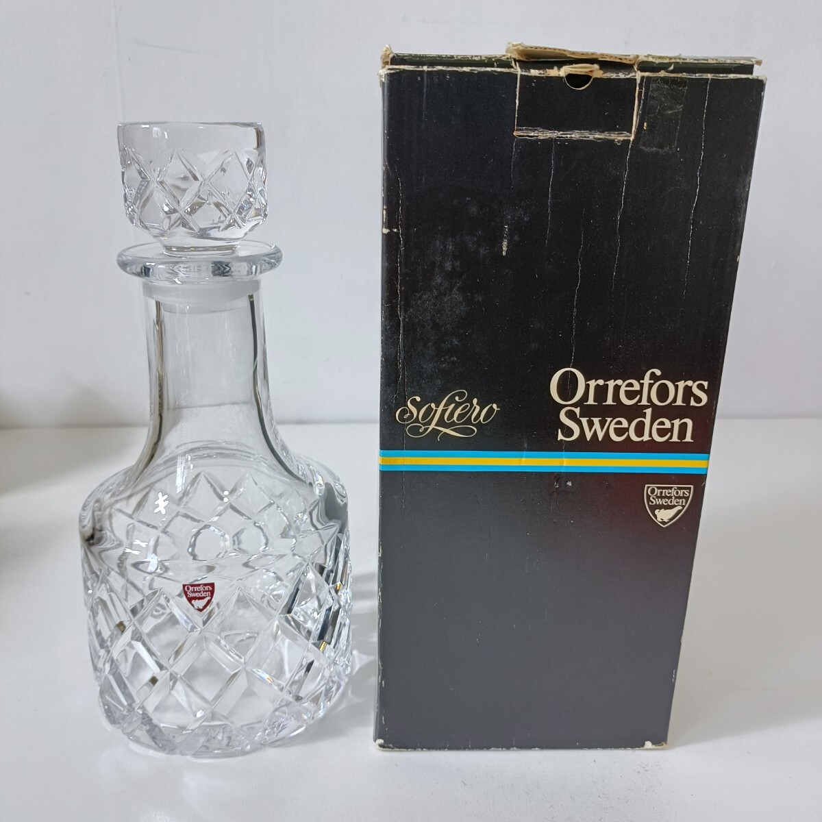 > スウェーデン王室御用達 クリスタルガラス Orrefors オレフォス SOFIERO ソフィエロ デカンタ 高さ26cm×直径12.2cm 未使用品 最高級酒器