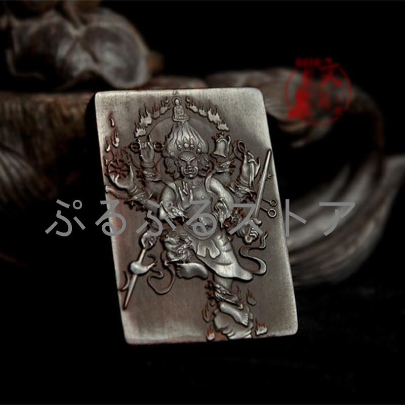 - 木彫りの仏像 烏枢沙摩明王 天然木 高密度 小葉紫檀 シタン 紫檀木_(トイレの神様)(うすさまみょうおう) (60×40×10mm, 金星小葉紫檀)