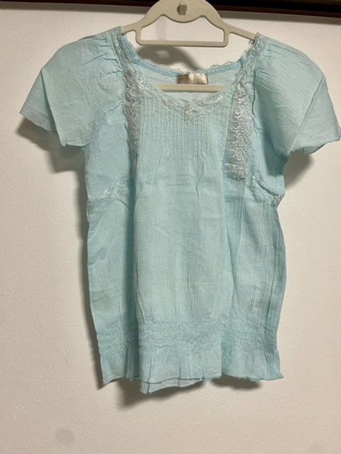 - UESD半袖胸レースブラウス・水色・Mサイズ(レディース)
