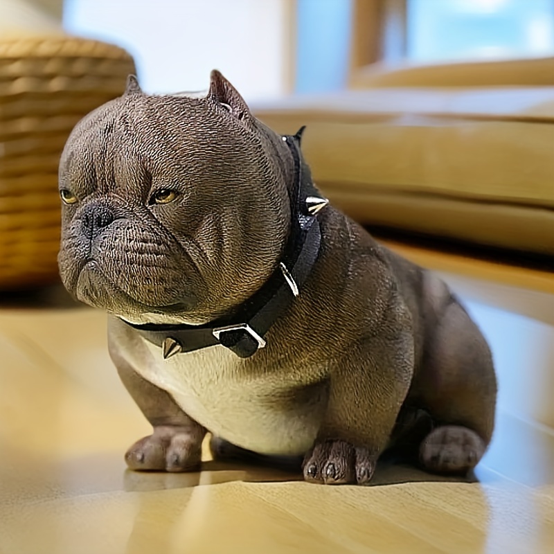 > ミニチュア 置物 犬 ブルドッグ グレー リアル 13cm お座り いぬ イヌ 樹脂像 インテリア エクステリア 庭 動物 レジン フィギュア t6583