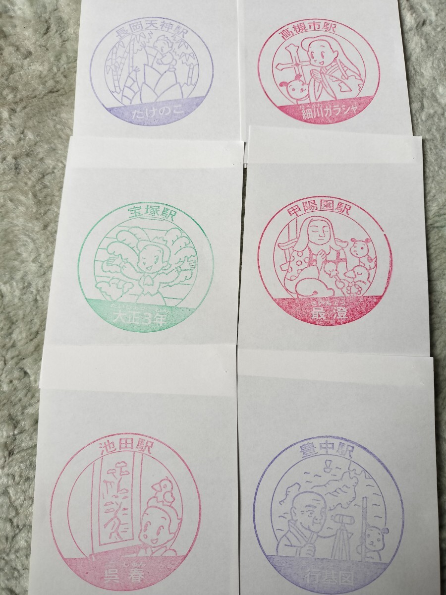 - 阪急 駅スタンプ 旧印 長岡天神、高槻市、宝塚、甲陽園、池田、豊中 スタンプ廃止