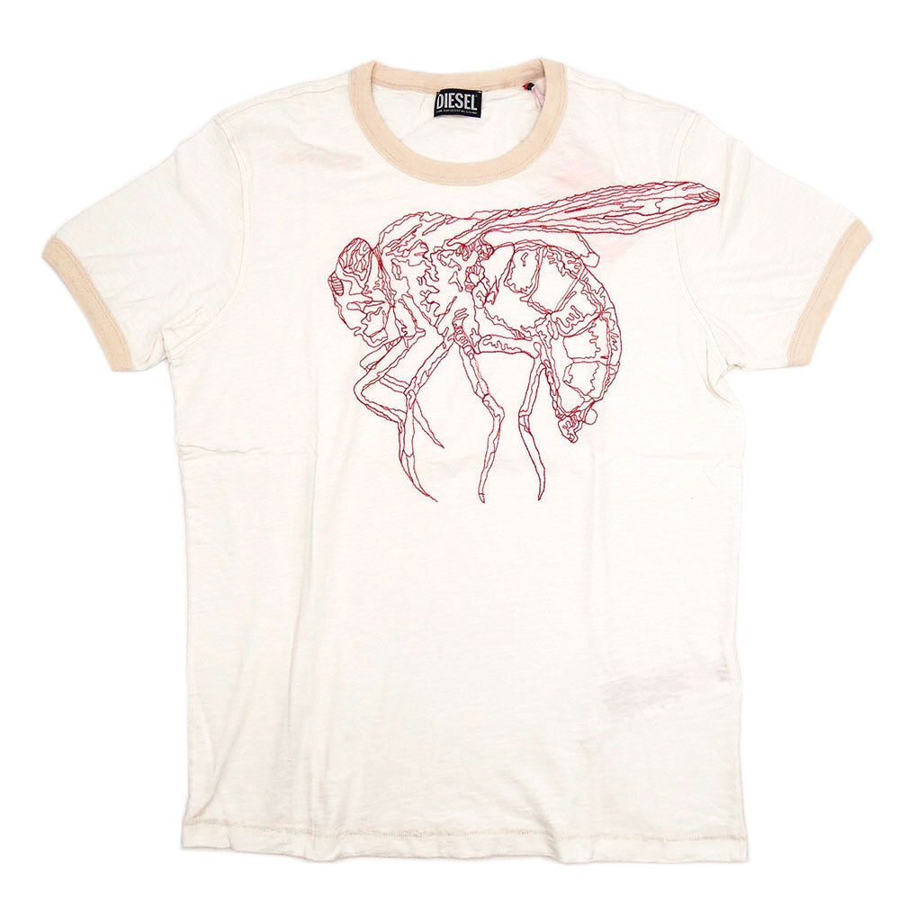 > 未使用 ディーゼル 半袖Tシャツ DIESEL メンズ Tシャツ 丸首 コットン 100% オフホワイト レッド 白 Lサイズ 蜂 ハチ 刺繍 A06789