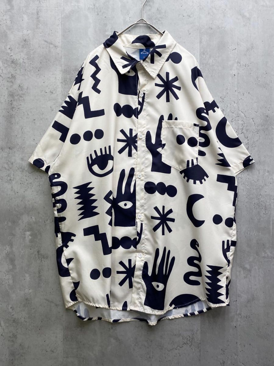 - ゆうパケットOK TIDE EKU 総柄 シャツ アイボリー ■◆