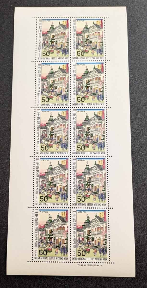 - 1970年・特殊切手-国際文通週間シート(駅逓寮図)