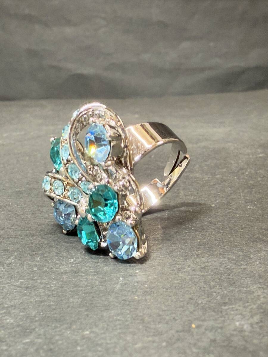 > コレクター必見 シルバーカラー×ラインストーン リング 指輪 フリーサイズ レディース アクセサリー 飾り コレクション To882