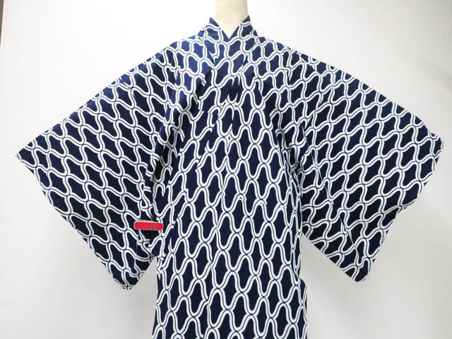 - 《京都一輝堂》【着物】昭和レトロ 浴衣 男物 抽象柄 身丈約138cm 裄丈約67cm r7z05-513