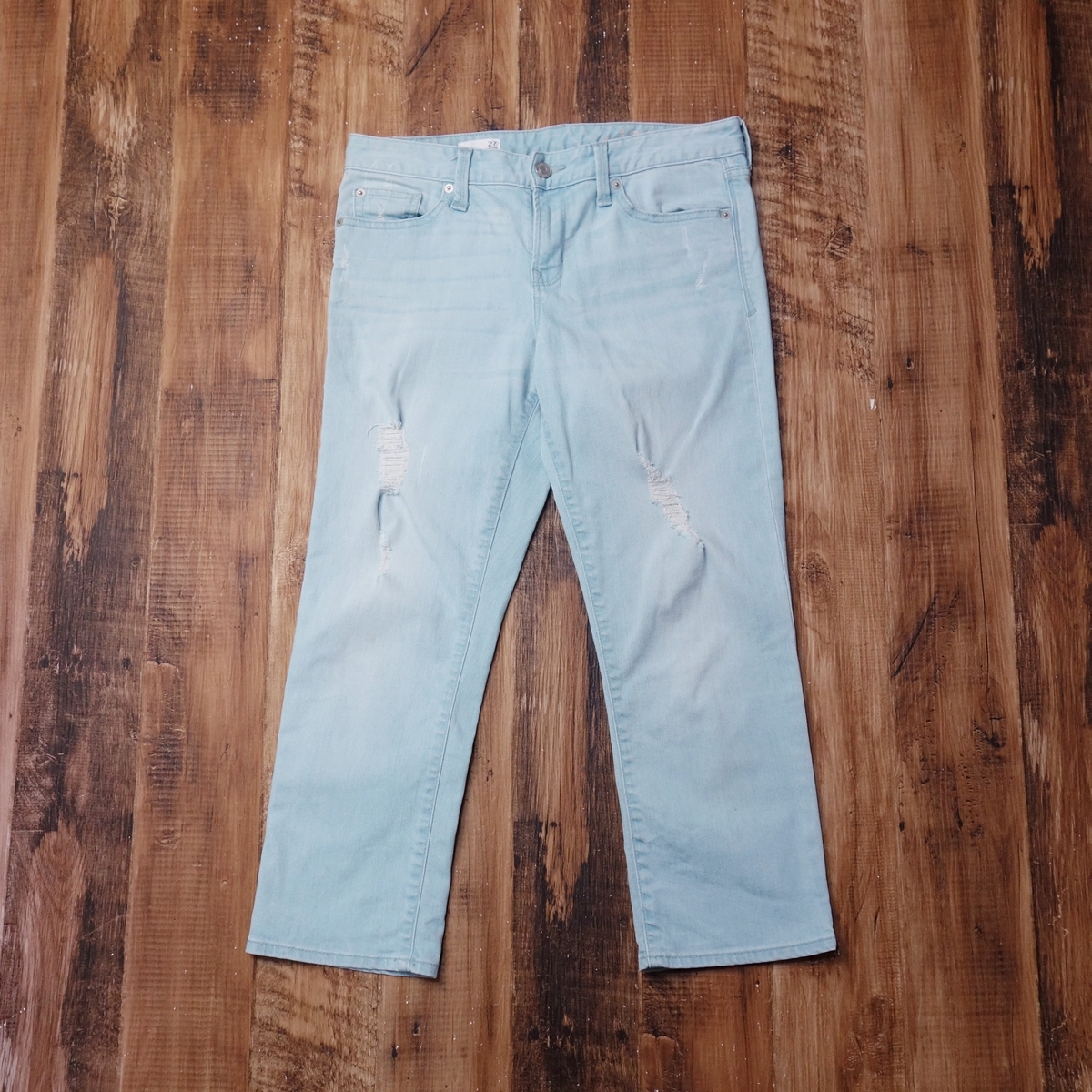 > ギャップ GAP リアルストレート アイスブルー ダメージデニム レディース アンクル丈 ストレッチ 1969 27インチ ライトブルー MD26