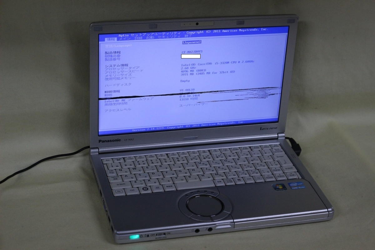 - ジャンク品ノートパソコン Panasonic Let's note CF-NX2 COREi5 メモリ4GB HDD不明 12.1inchワイド カメラ内蔵 起動確認済 代引き可