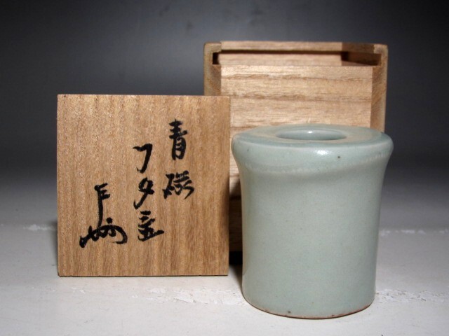 - 時代 青磁蓋置 表千家十三世即中斎花押の逸品☆z444