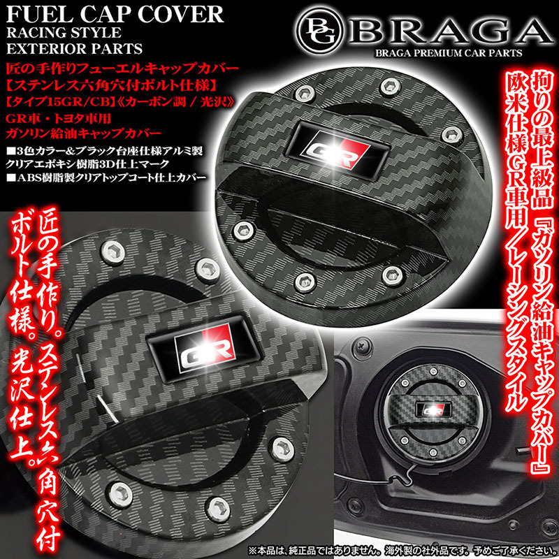 > セダン/スポーツ/コンパクト/匠の手作り[タイプ15GR/CB]トヨタ車/GR車互換品 給油 フューエル キャップ カバー[カーボン調]ボルト付/ブラガ