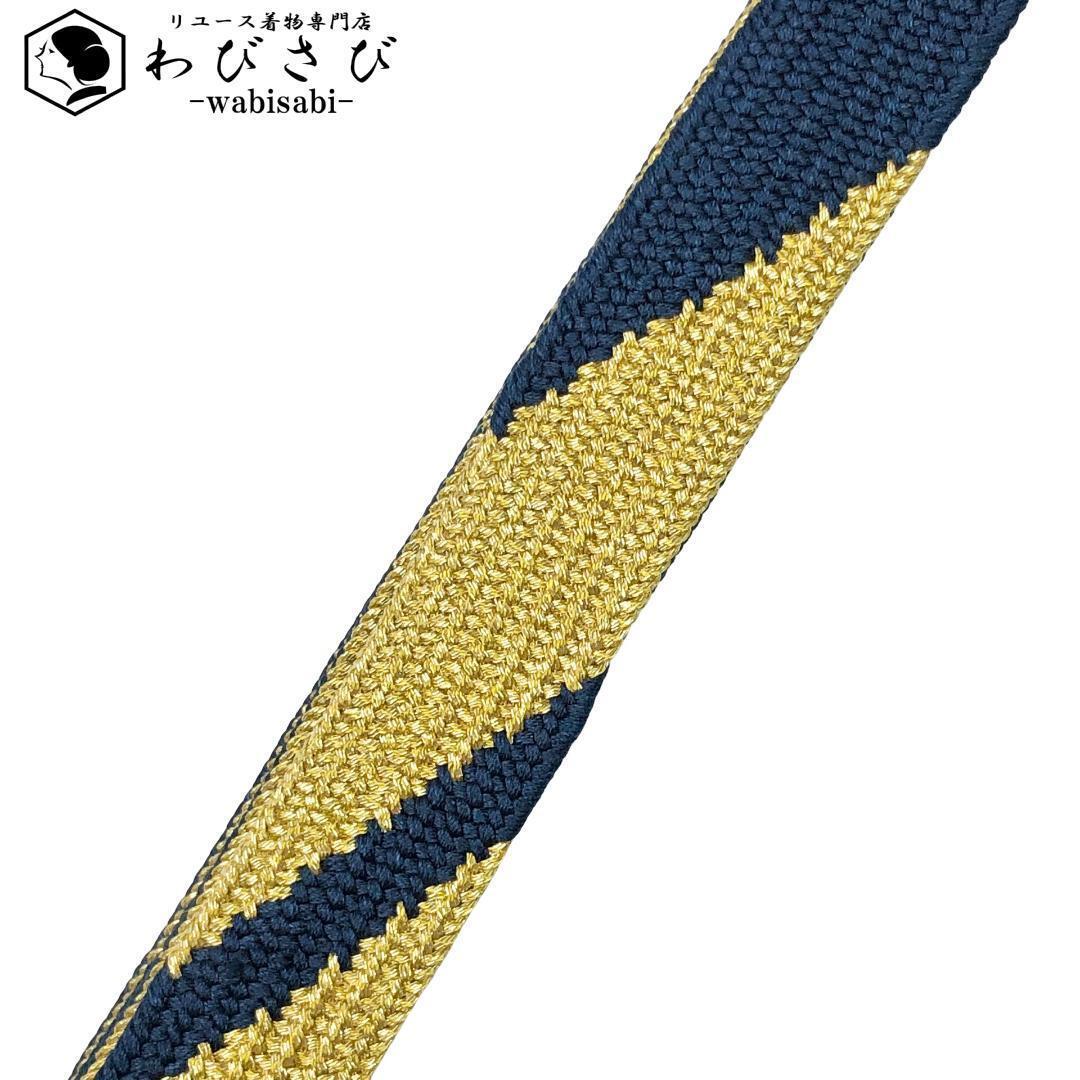 - 和装小物 帯締め 正絹 高麗組 平組紐 組紐 鉄紺色 金糸 C-5962 着物 きもの kimono 和服 和装 中古 リサイクル着物 【送料無料】
