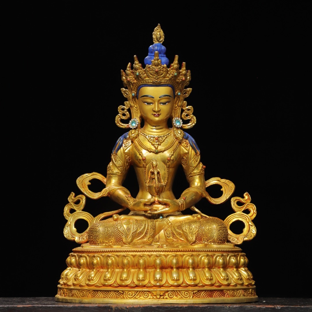 > 仏像 清代 藏 宗教仏像を家に供え彩色を描く【長寿仏】仏像造像 銅製 銅琉金 仏教 唐物 收蔵品 時代物 古置物 希少珍品 供養品 5.31