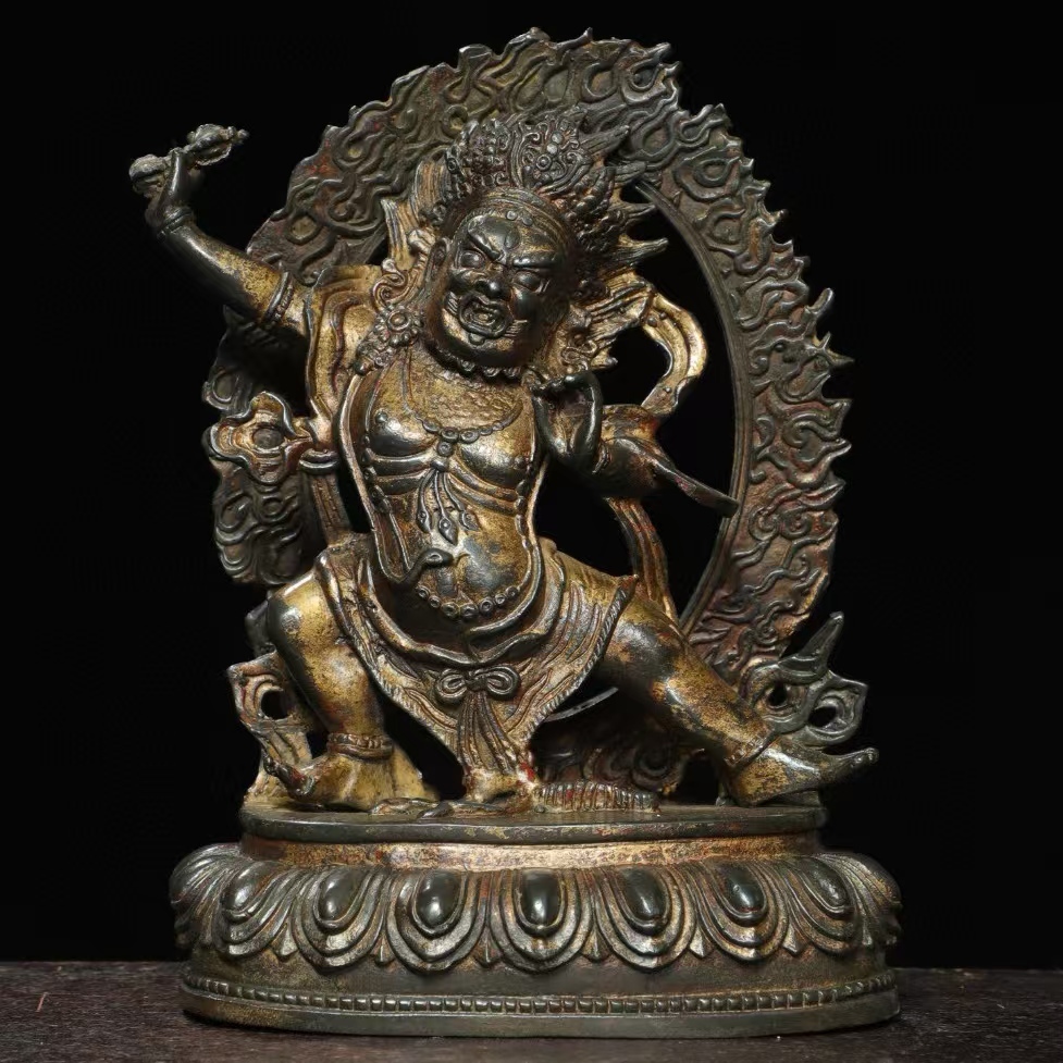 - 仏像 清代 旧蔵 古銅 蒔絵【金剛手菩薩仏】造像 銅製 銅琉金 仏教 唐物 收蔵品 時代物 古美術 細密造 古置物 希少珍品 供養品 5.31