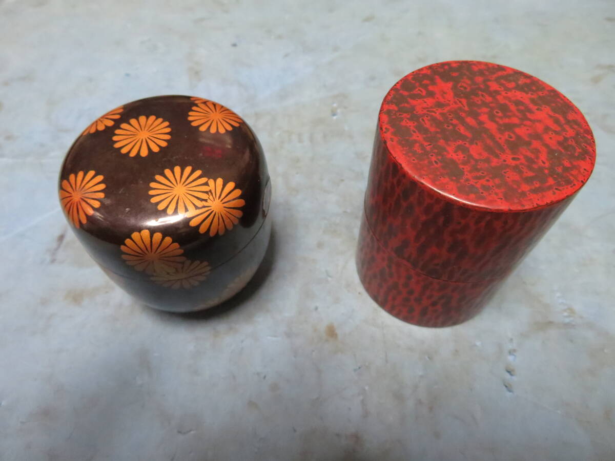 - 廃業骨董店蔵出し品 漆器茶筒 鎌倉彫 茶筒