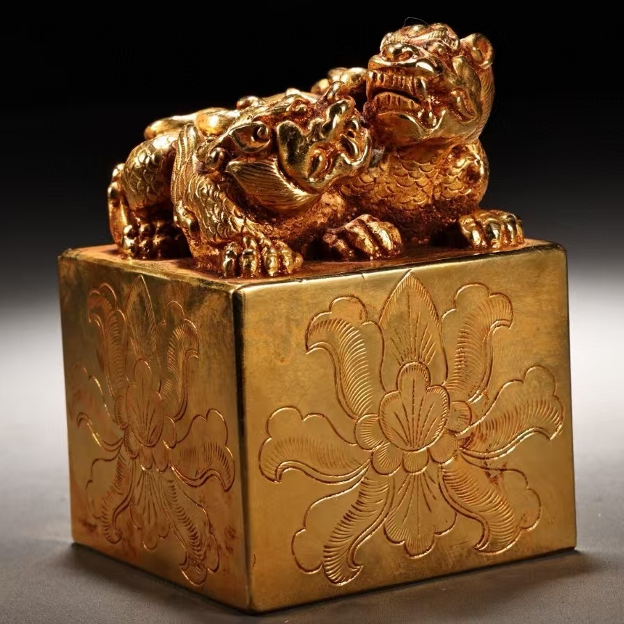 > 印鑑 清代 秘蔵 王侯帝王金神竜印 皇室の国王の玉璽 文臣武将印鑑 印鑑の方 文房具 古印材 銅製 銅琉金 唐物 收蔵品 時代物 古置物 希少