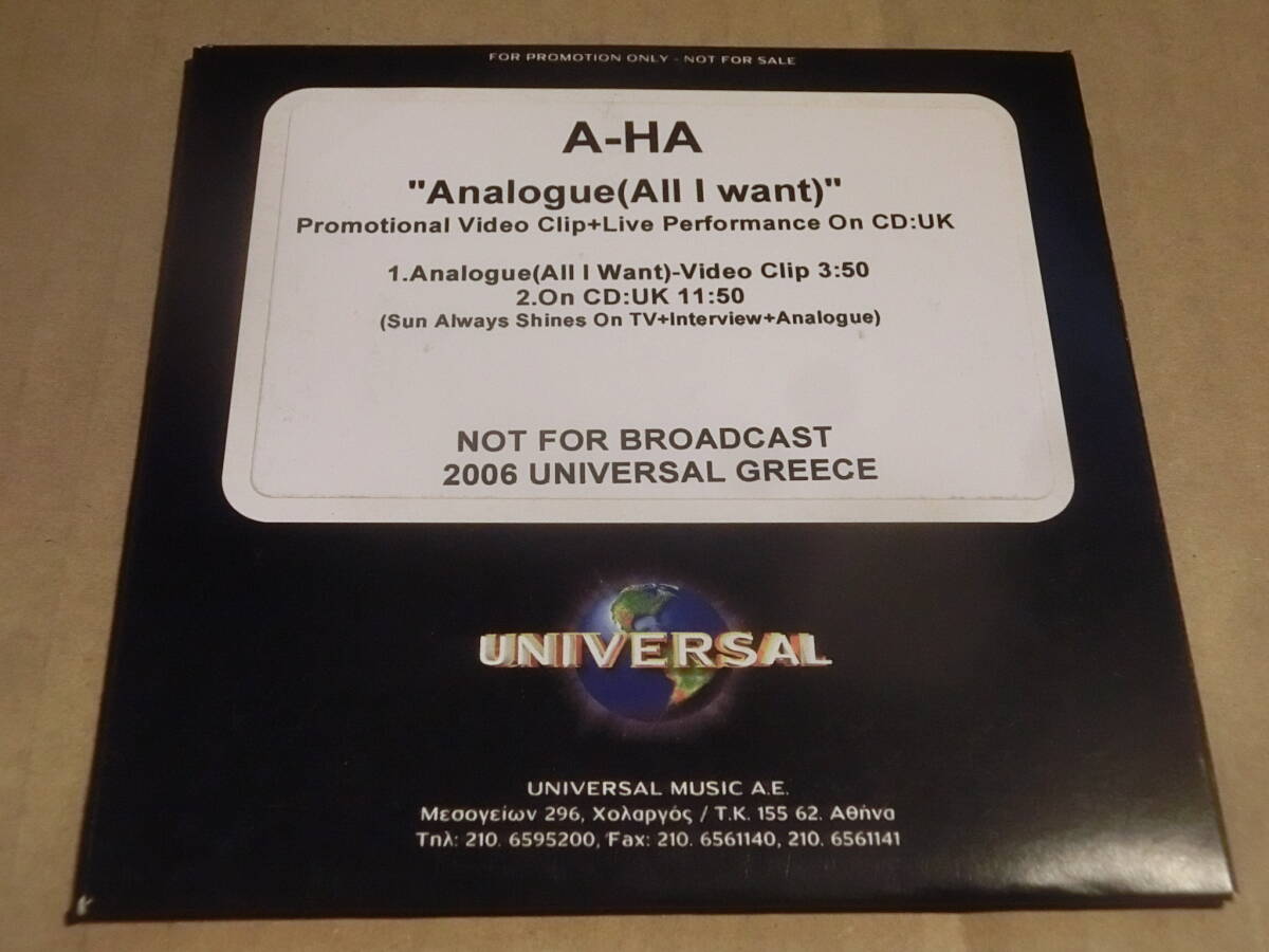 - a-ha Analogue DVD, CD, Promo 2006年 Universal Music A/E Universal Greece Promo Edition in stickered Cardborard sleeve