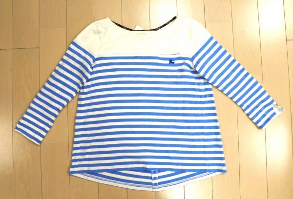 > バーバリー ブルーレーベル ★ チュニック・シャツ ★ ホワイト・ライトブルー・ボーダー柄 ★ ホースマーク刺しゅう入り