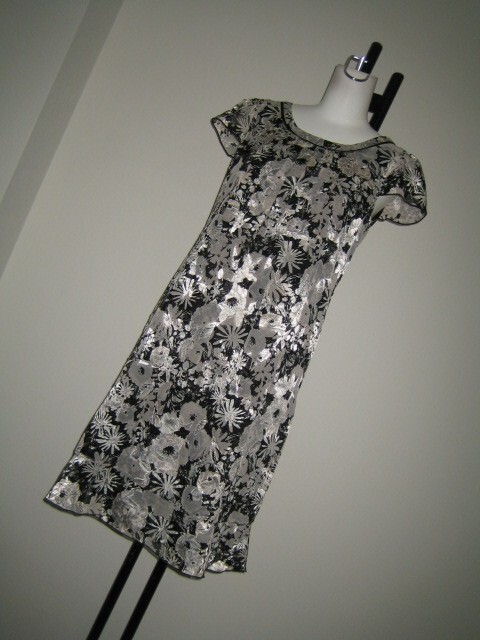 - ☆☆モノトーン タックデザイン フラワーモチーフ ワンピース