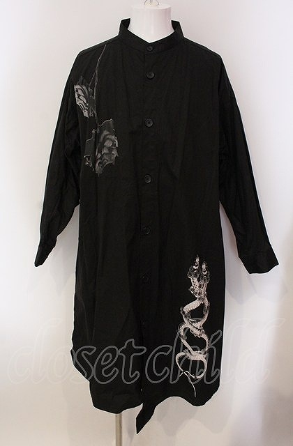 > NO ID. BLACK / BIGロングプリントシャツ ONE ブラック O-25-05-18-029-NO-sh-YM-ZT357