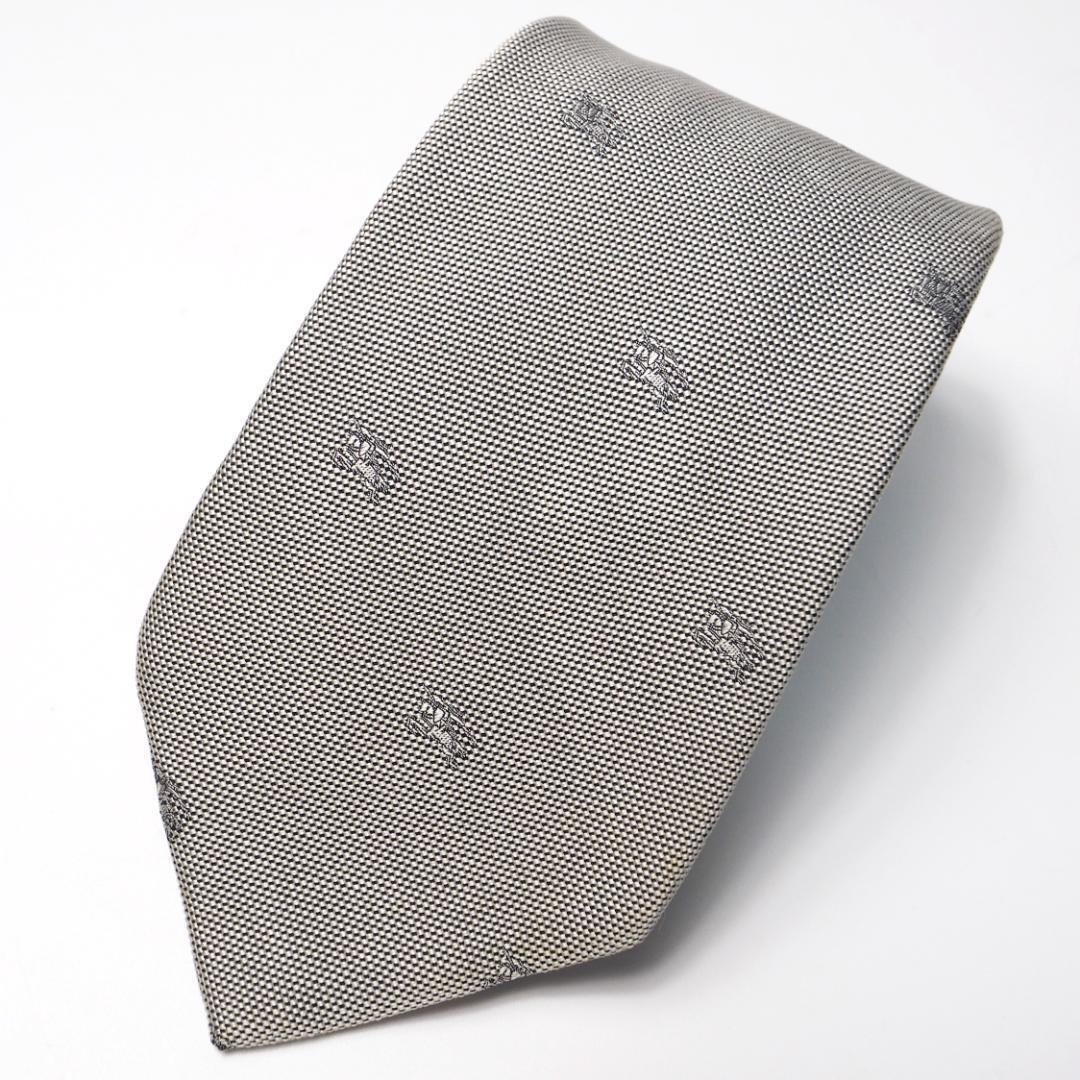 > バーバリーロンドン BURBERRY LONDON シルク100% ネクタイ シルバー 刺繍ロゴ 日本製 スーツ フォーマル