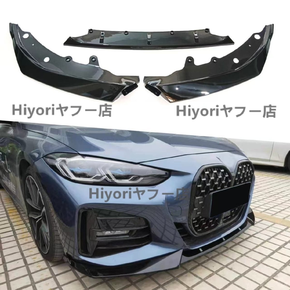 - BMW 4シリーズ G22 クーペ用 競技スタイル フロントリップスポイラー 3分割式 外装カスタムパーツ 艶ありブラック・カーボン調