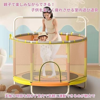 - 子供用トランポリン 鉄棒付き トランポリン ベビーサークル 子供 大人用 家庭用 手すり 保護ネット付き 直経120cm ダイエット 室内 鉄棒
