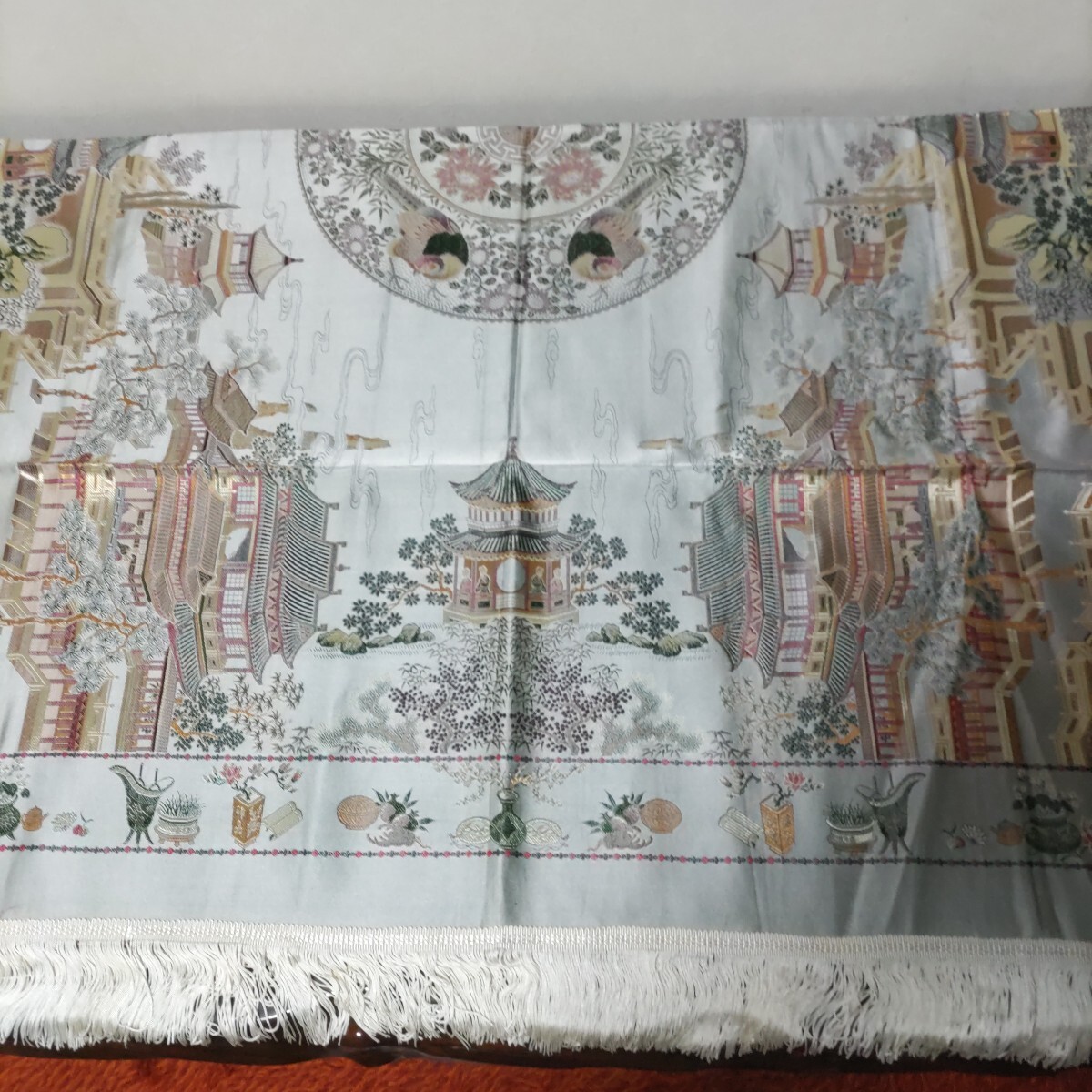 - 詳細不明 中国刺しゅう? 大連友諠商店 テーブルクロス タペストリー 室内装飾 大型 138cm x 138cm