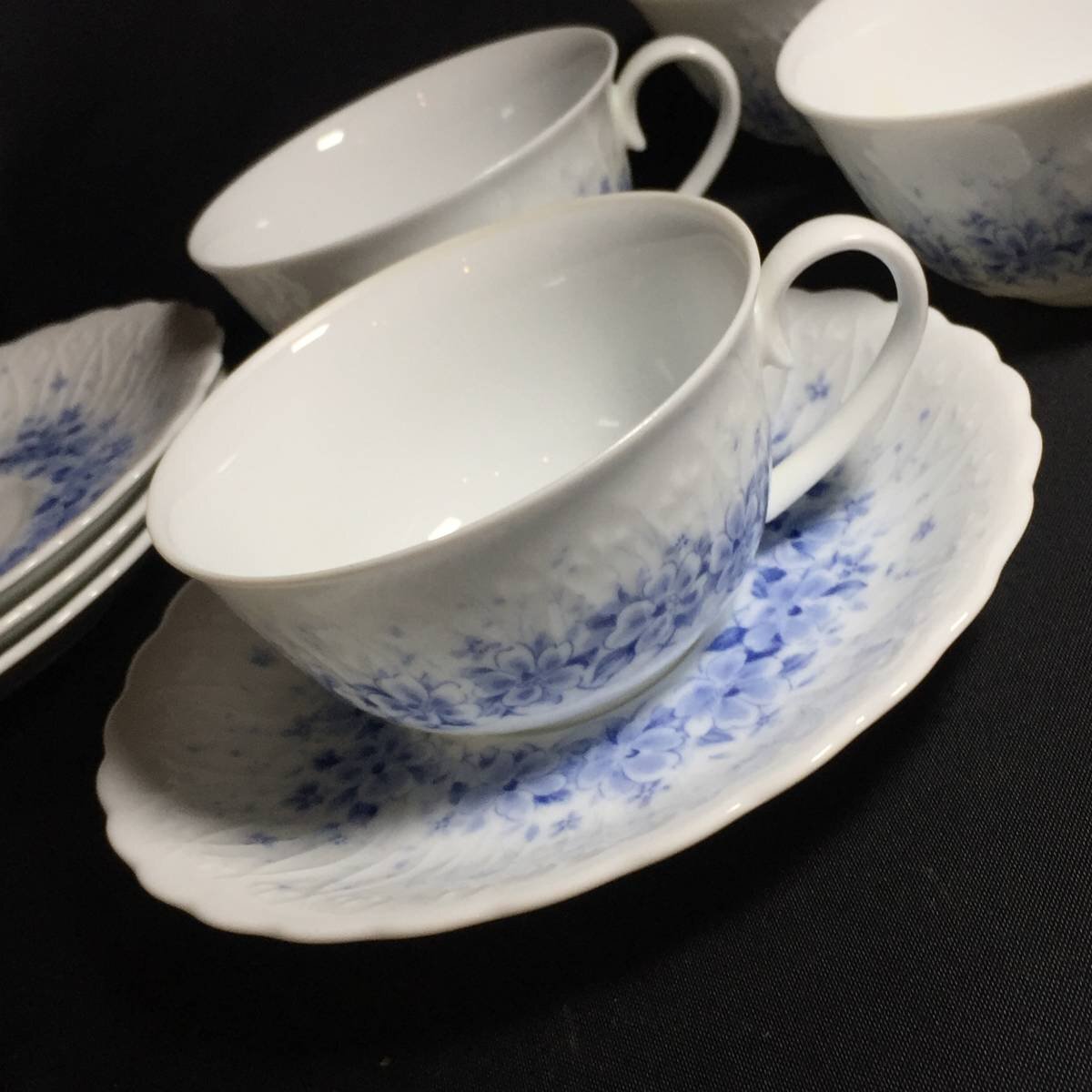 > ER-80【 HOYA 】 ホヤ 保谷 ティー カップ ソーサー 4客 ブルー フラワー エンボス 中古
