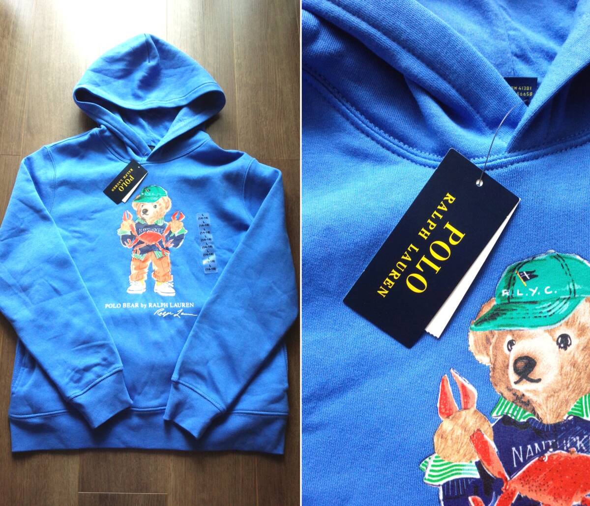 > 【新品】 ポロラルフローレン ベア パーカー L ボーイズ 160cm (14~16) 青 ブルー フリース フード POLO BEAR ポロベア Ralph Lauren