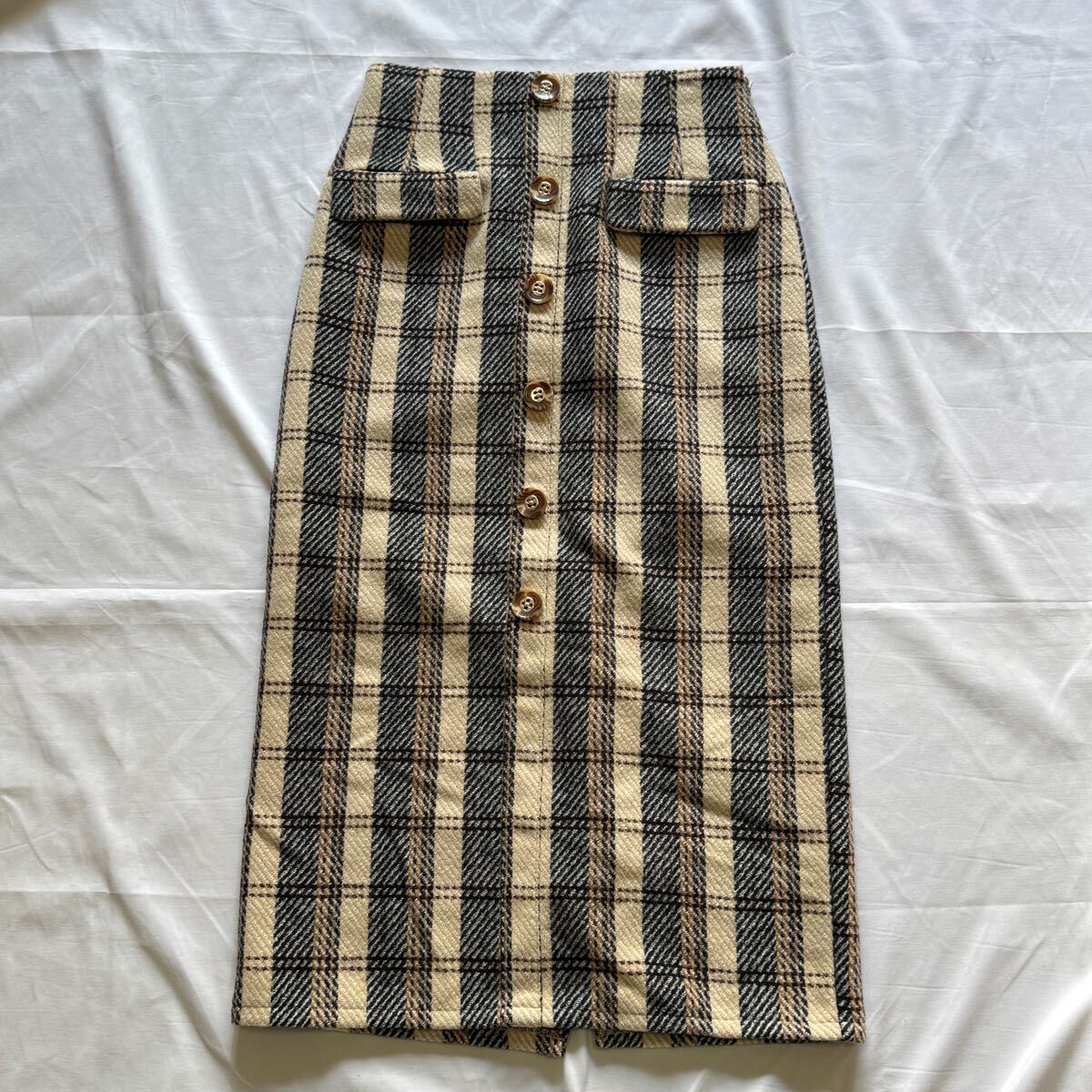 - GRL グレイル チェック柄 バックスリット タイトスカート ベージュ L