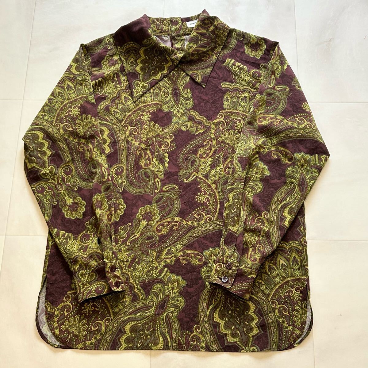 > CHRISTIAN AUJARD PARIS 総柄 柄シャツ ペイズリー レトロ アート 長袖シャツ ブラウス ポリエステル100%