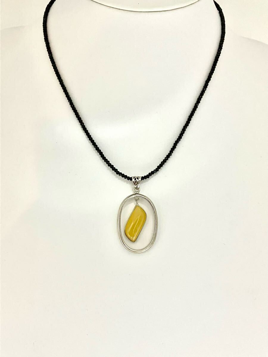 - 【新品】イエローメノウネックレス/天然ネックレス/デザインネックレス/揺れるデザイン/シンプル/ブラックスピネル/イエロー/アゲート/瑪瑙