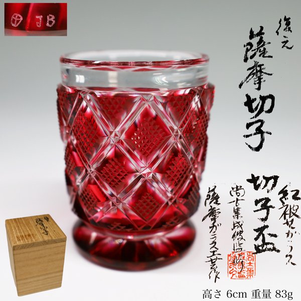 > ◇雅◇ 復元 薩摩切子 薩摩ガラス工芸 紅被せガラス 切子盃 尚古集成館監修 切子ガラス ぐい呑 猪口 共箱 /MK.25.5 [J42.3] OOSN7