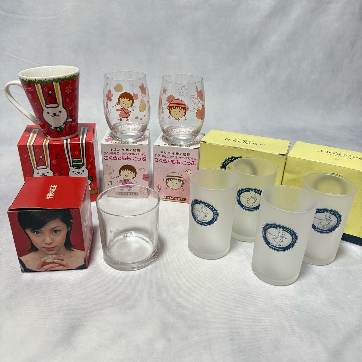 > 1円スタート☆未使用☆まとめ売り ノベルティ グラス コップ カップ 非売品 あやや さくらももこ ピーターラビット ロールちゃん 当時物