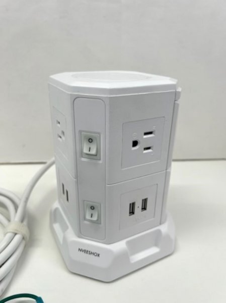 > 【丸-877】NS◆[NVEESHOX]電源タップ USBタワーパワーソケット◆AC/USB/延長コード/個別スイッチ◆ユーズド・中古◆KT