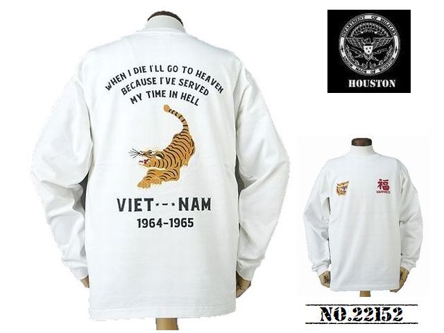 > 【送料無料 34%OFF】HOUSTON ヒューストン ベトジャン柄 発砲プリント 長袖Tシャツ 「TIGER」 NO.22152 WHITE_Mサイズ