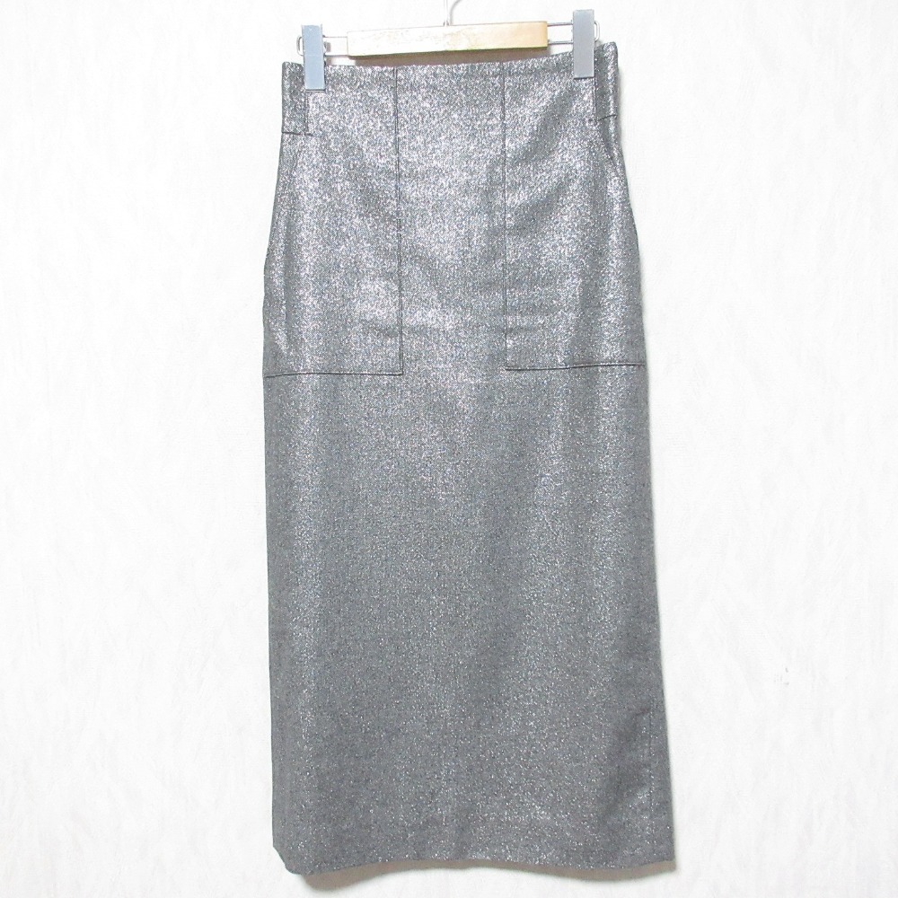 > 美品 24AW ROPE ロペ BALLI (バリ) ラメ無地ポケット付きタイトスカート GGC34310 38 シルバーカラー