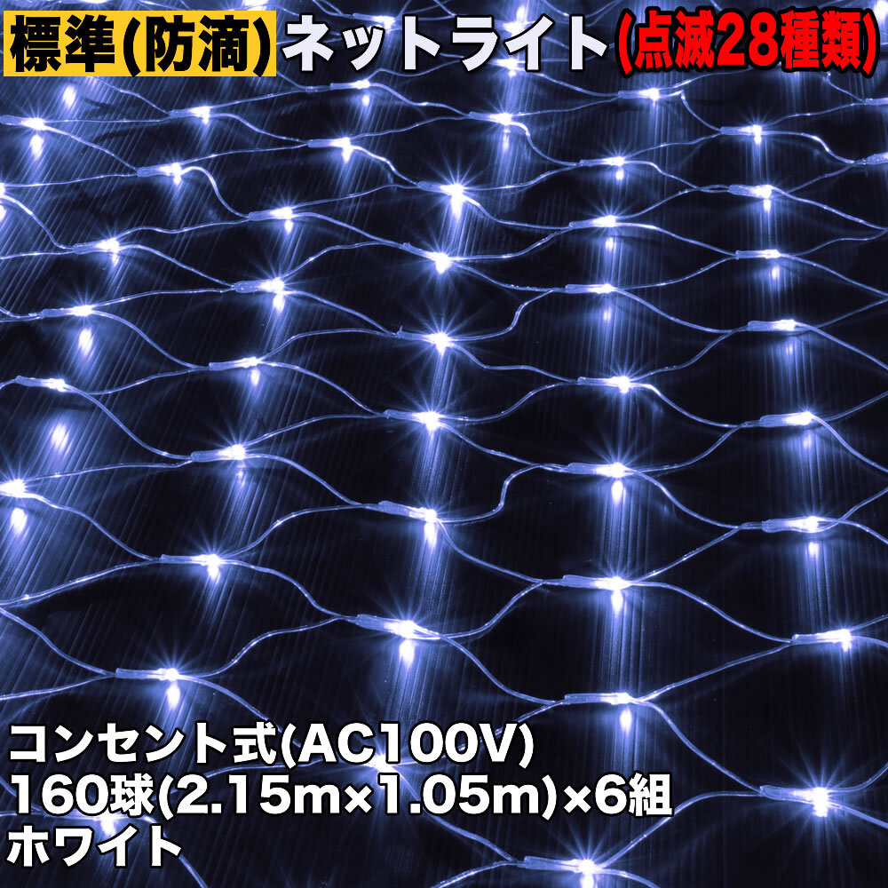 > クリスマス 防滴 イルミネーション ネット ライト 網状 電飾 LED 960球 (160球×6組) ホワイト 白 28種点滅 Bコントローラセット