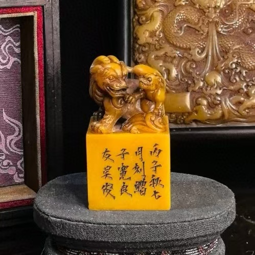 > 清代の著名な彫刻家「呉昌碩」の所蔵品 寿山石極品田黄帝王獅子印セット 印章 印鑒 古印材 印鑑の方 唐物 古玉彫 天然石 古賞物 美術 置物