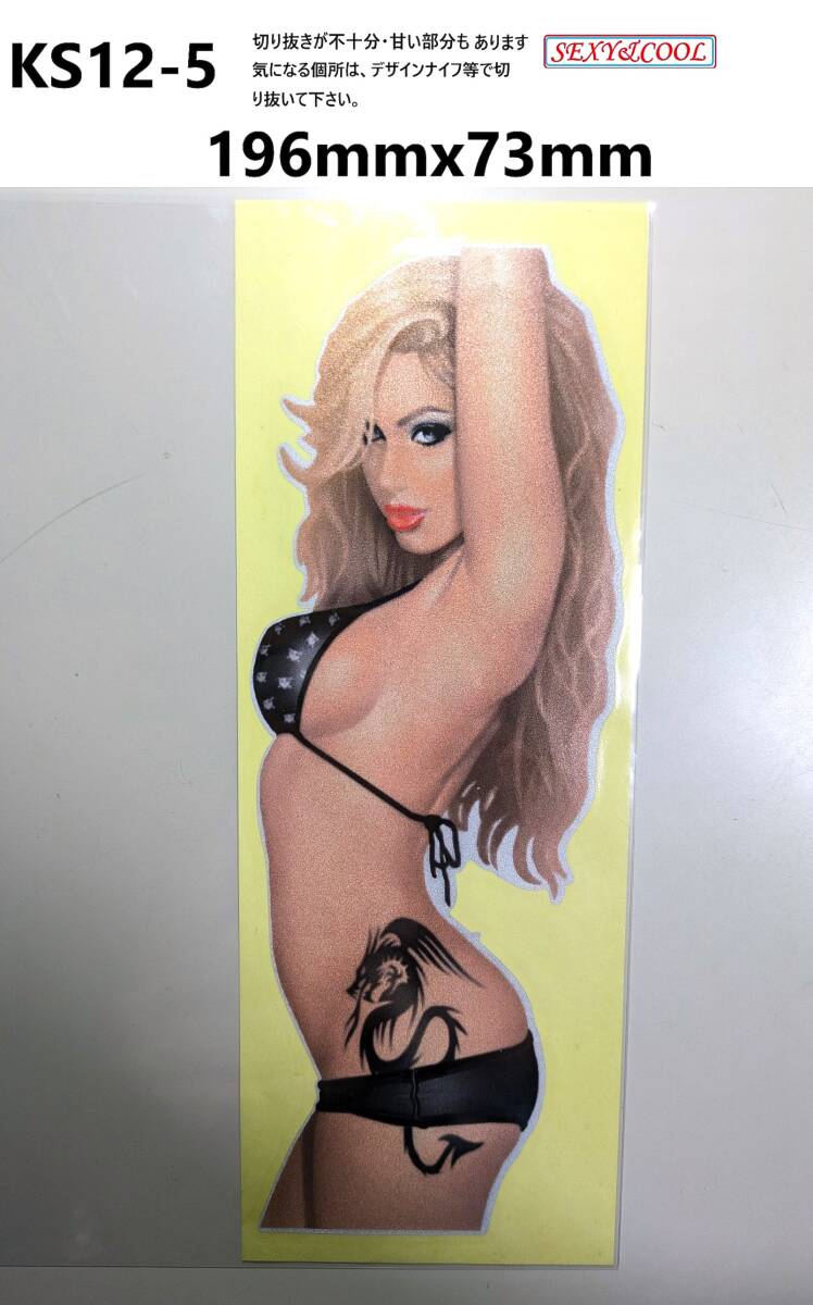 - 匿名送料無料 SK12-0503 特価 美人 タトゥー 黒 ドラゴン 金髪 SEXY!! キラキラ セクシーステッカー レトロ ギター ボード デカール