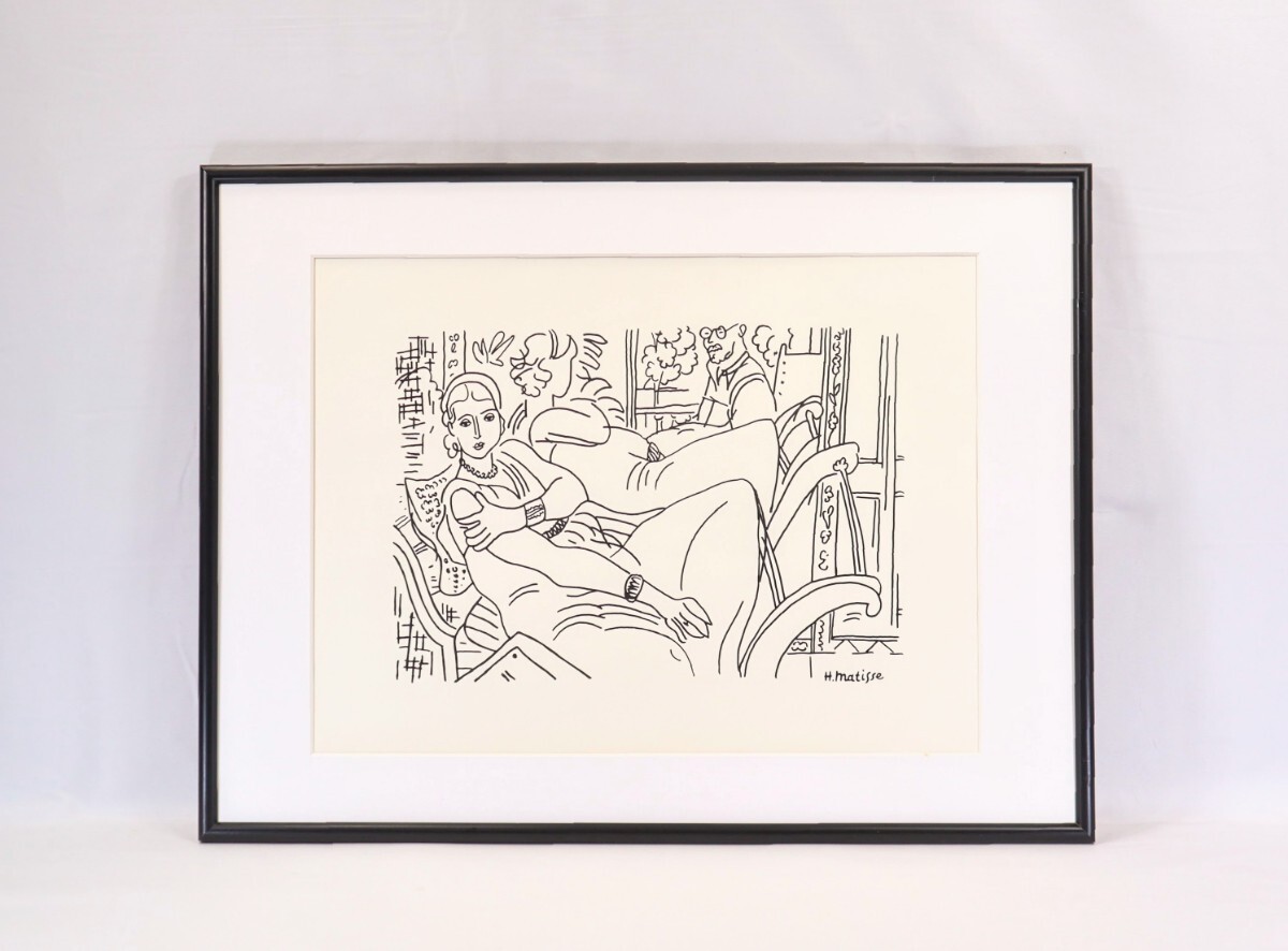 > 真作 アンリ・マティス ジクレー「Le peintre et son modle 画家とモデル」画寸 56cm×42cm 仏人作家 シンプル且つ流れる様な描線 10950