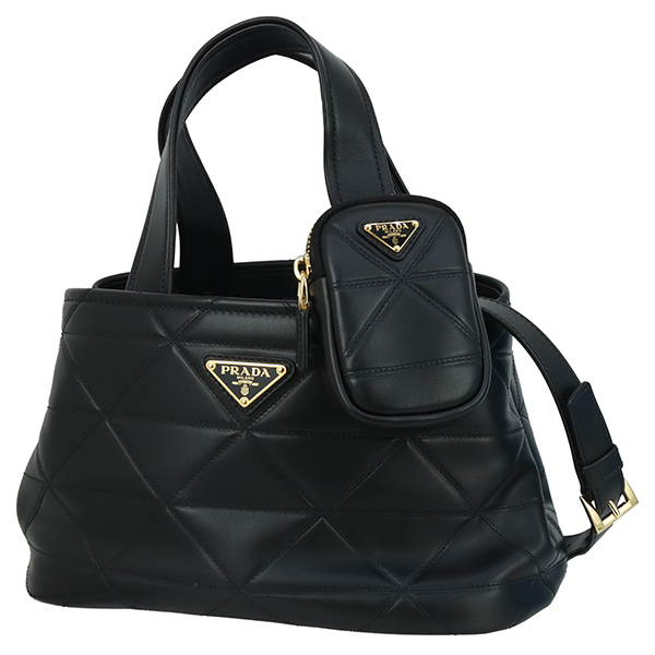 - プラダ スモールトートバッグ トライアングルキルティング ラムスキン ブラック ゴールド 6350