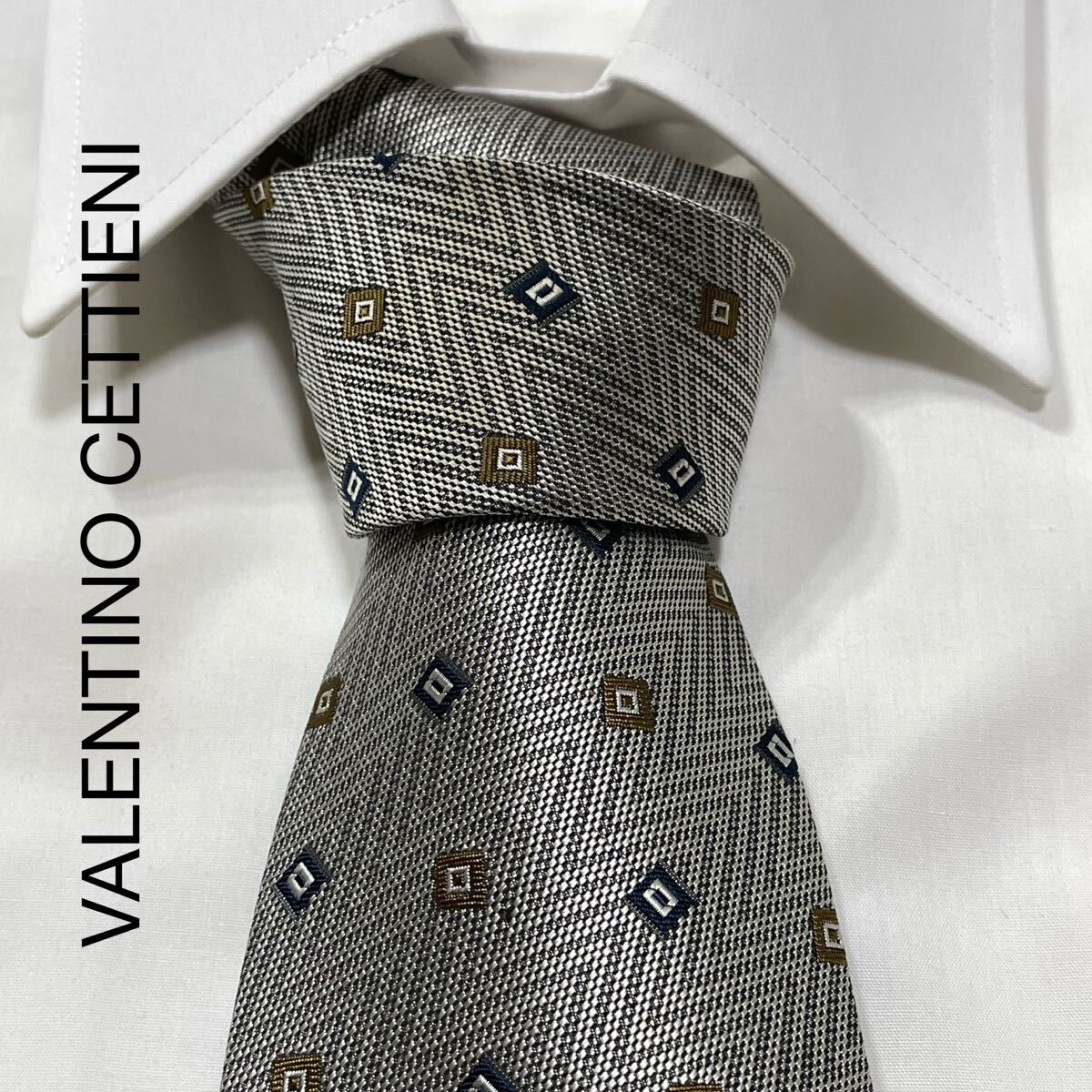 - VALENTINO CETTIENI パターン柄 ヘリンボーン ポリ ネクタイ グレー TG1693