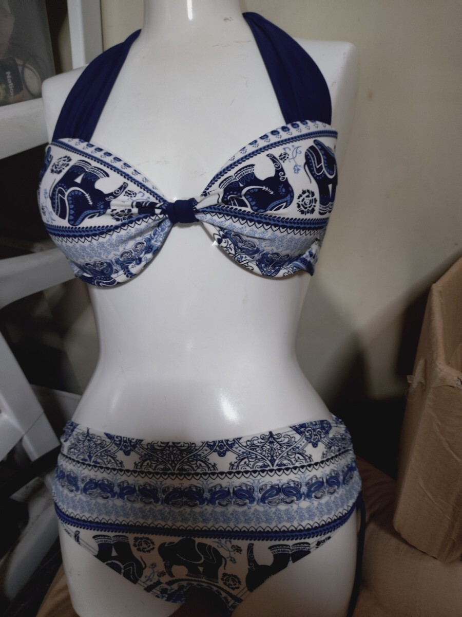 - M4241◆ワンピース付き◆セレブなブルー系模様柄ビキニ◆9M